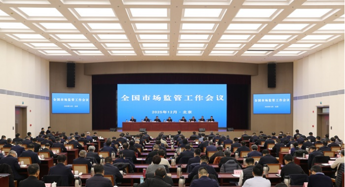 会议指出,2025年,以习近平同志为核心的党中央团结带领全党全国各族人民,沉着应变、综合施策,推动经济运行总体平稳、稳中有进,中国式现代化迈出新的坚实步伐。各级市场监管部门深入贯彻习近平总书记重要指示批示精神,坚持“讲政治、强监管、促发展、保安全”工作总思路,推动经营主体发展质量不断提升,消费者权益保护力度进一步加大,反垄断反不正当竞争工作持续加强,质量基础设施建设更加适配产业需求,平台经济生态治理取得重要进展,“三品一特”安全形势总体稳定,有力维护和促进形成强大国内市场,支撑经济增长和服务高质量发展取得明显成效。